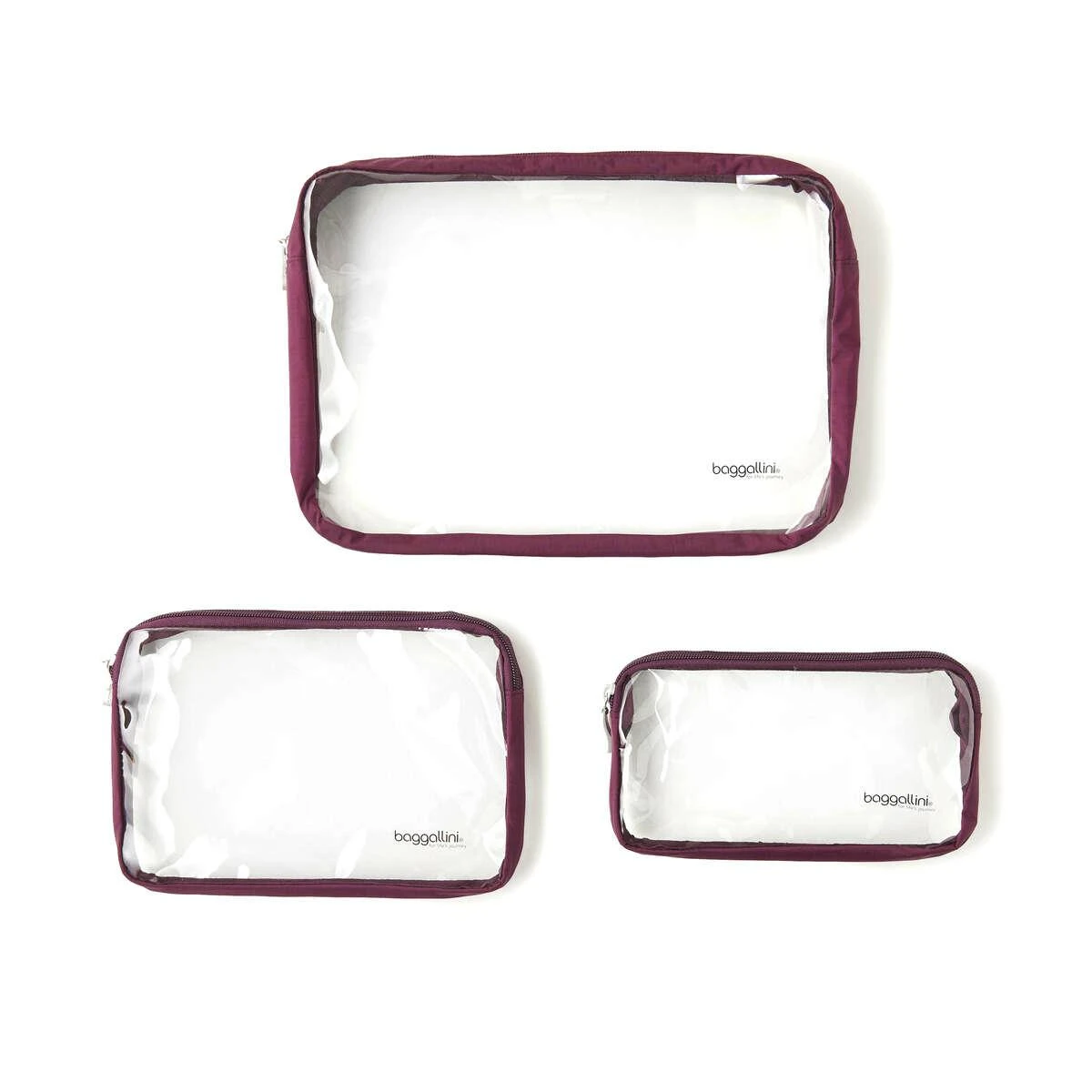 Change the way you stay organized with the Baggallini Clear Travel Pouch set. Designed for the modern traveler, these bags combine high visibility with premium durability, ensuring your toiletries and essentials are always within reach and protected from spills.