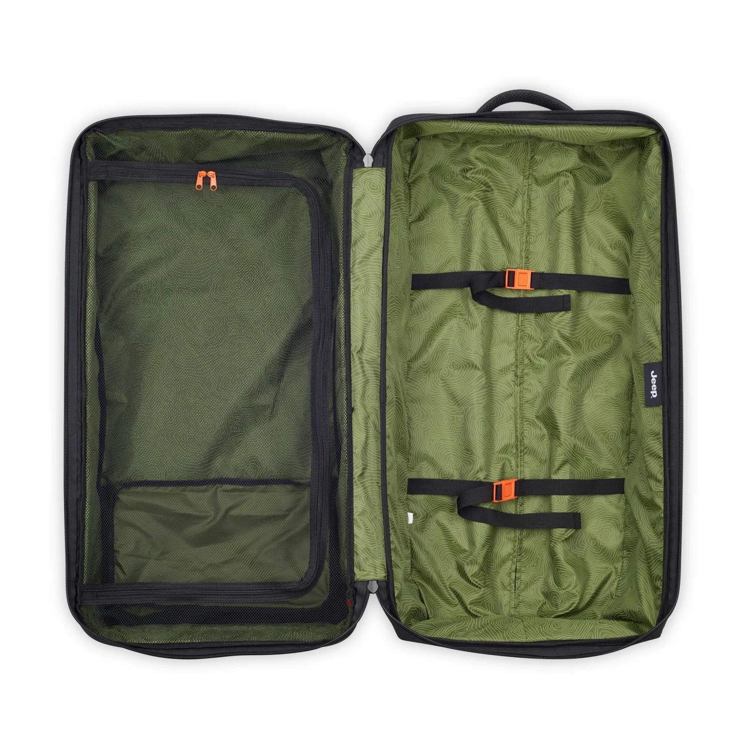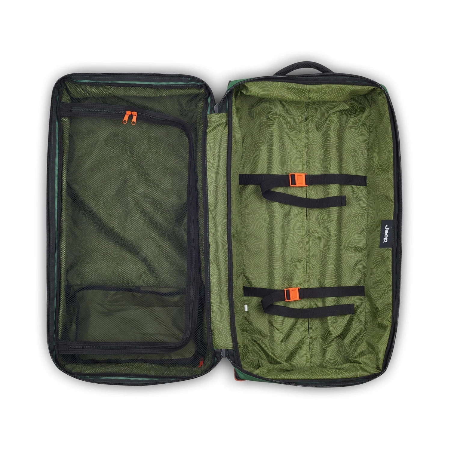 Introducing the rugged and eco-conscious Jeep JSOO5A rolling duffel, fashioned from recycled water-resistant polyester, perfect for embracing the great outdoors. Engineered with two sturdy wheels and a reliable trolley system, this duffel effortlessly glides through rugged landscapes, ensuring you’re prepared for any adventure. With a convenient carry handle and tote handles, along with two front pockets for additional storage, you can easily access essentials while on the move. Inside, discover two spacious packing compartments, allowing you to organize your gear efficiently for seamless travel experiences. Pack up and set out on your next expedition with the dependable performance and rugged durability of Jeep by your side.