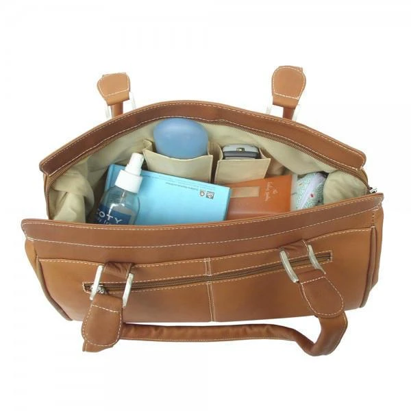 Elevate your professional and travel wardrobe with the sophisticated utility of the Piel Leather Double Handle Handbag. Crafted for the discerning traveler, this tote seamlessly blends timeless luxury with modern organizational needs.