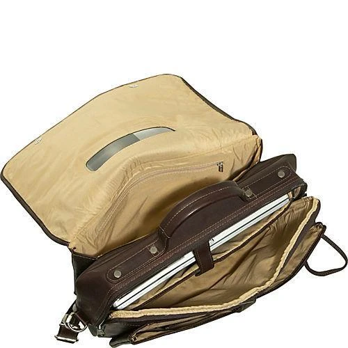 - Double magnetic snaps open flap to reveal large open pocket organizer/divider