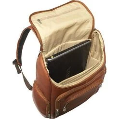 Bosca Dolce Amber Italian Vegetable-Tanned Leather Laptop Backpack – Professional 14-Inch Rucksack