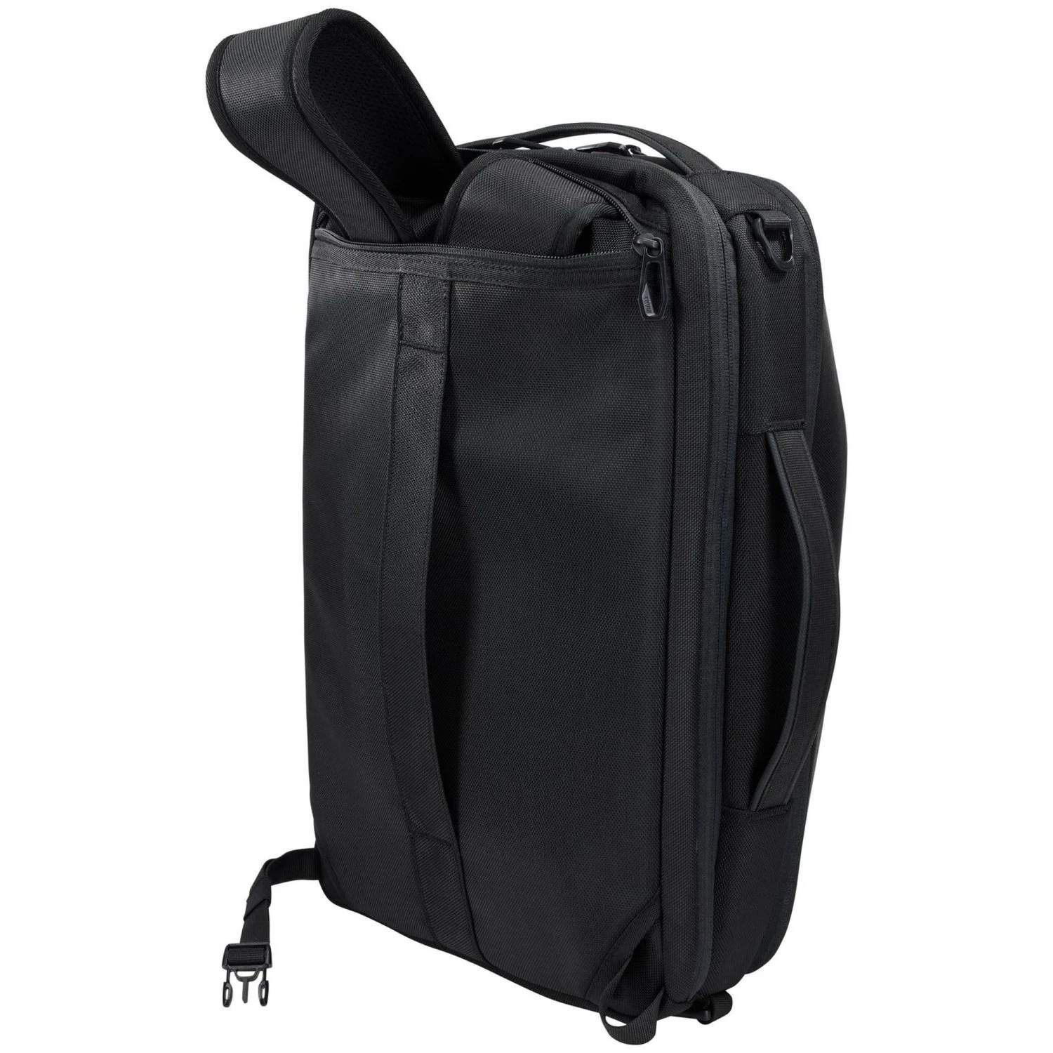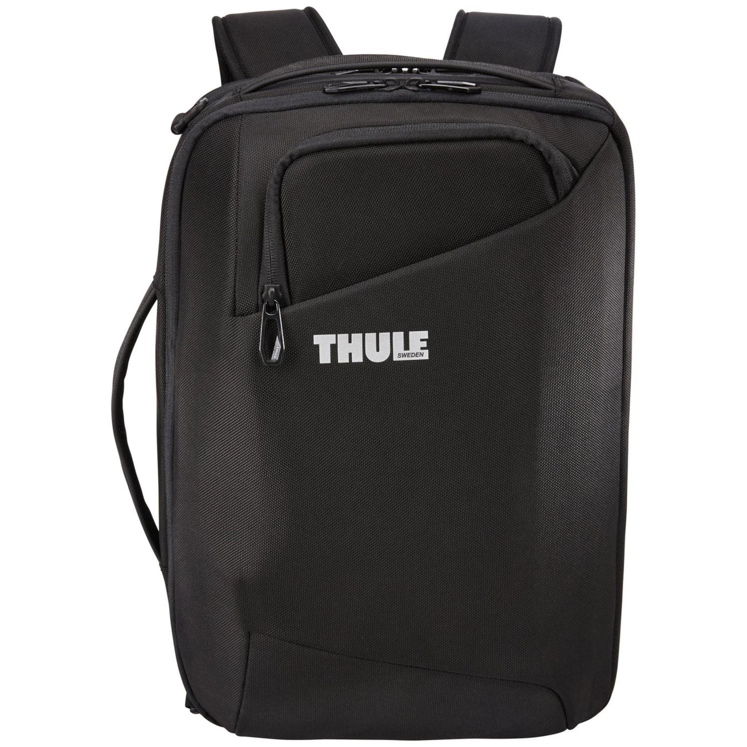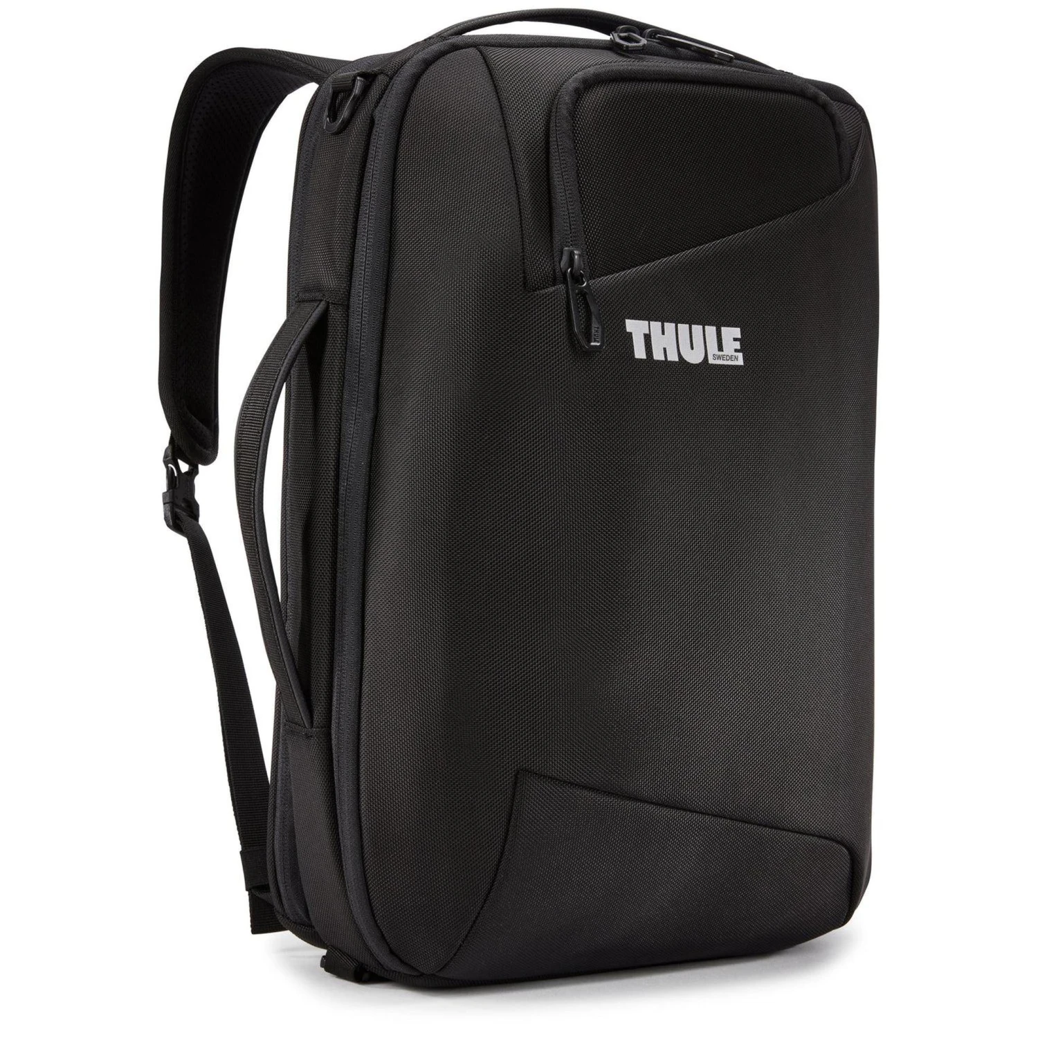 Featuring a sleek, all-black matte finish, the Thule Accent is crafted from premium, GRS-certified 100% recycled 1680 polyester material. Its clean lines are maintained by a clever hideaway strap system, allowing you to switch from a professional horizontal briefcase to a comfortable vertical backpack in seconds. The exterior is accented with durable YKK zippers and reinforced carry handles for a premium tactile feel.