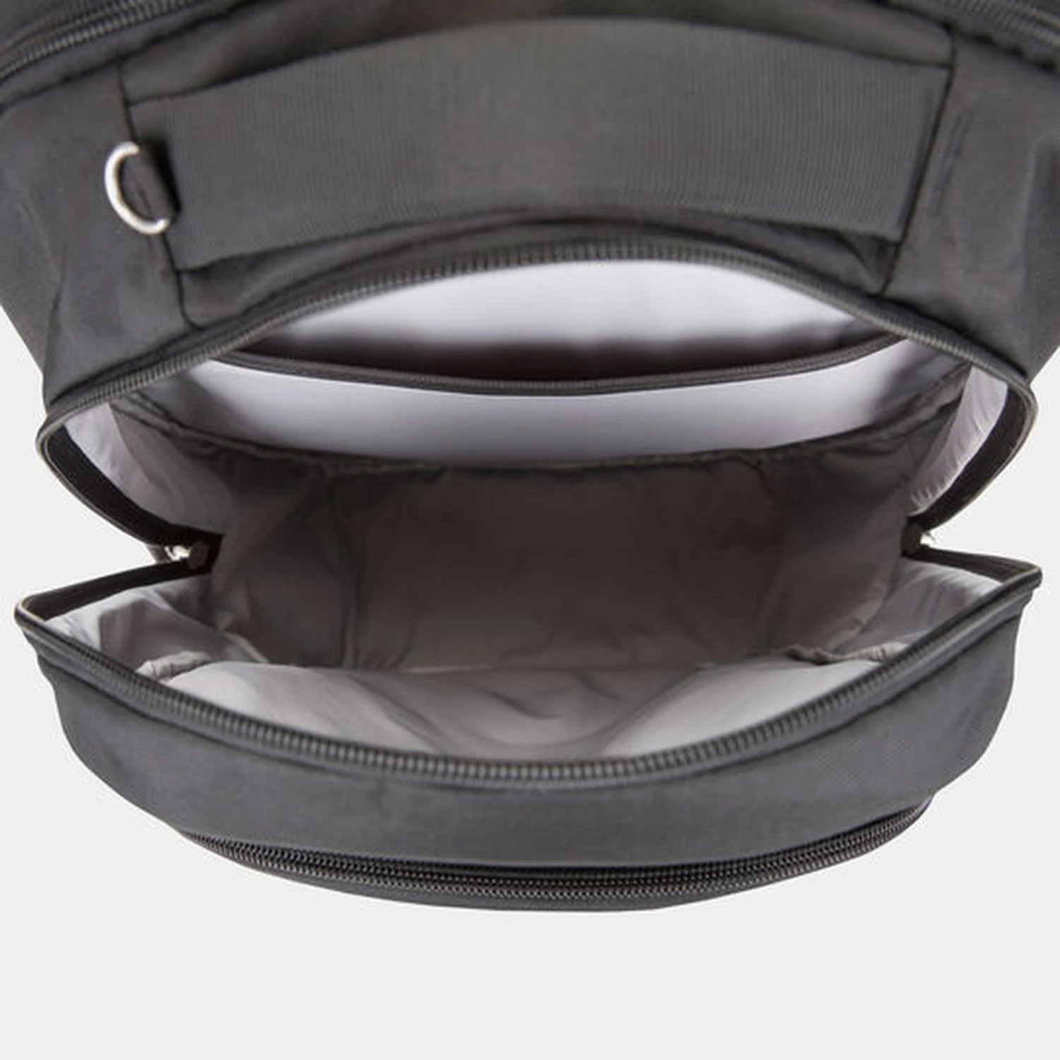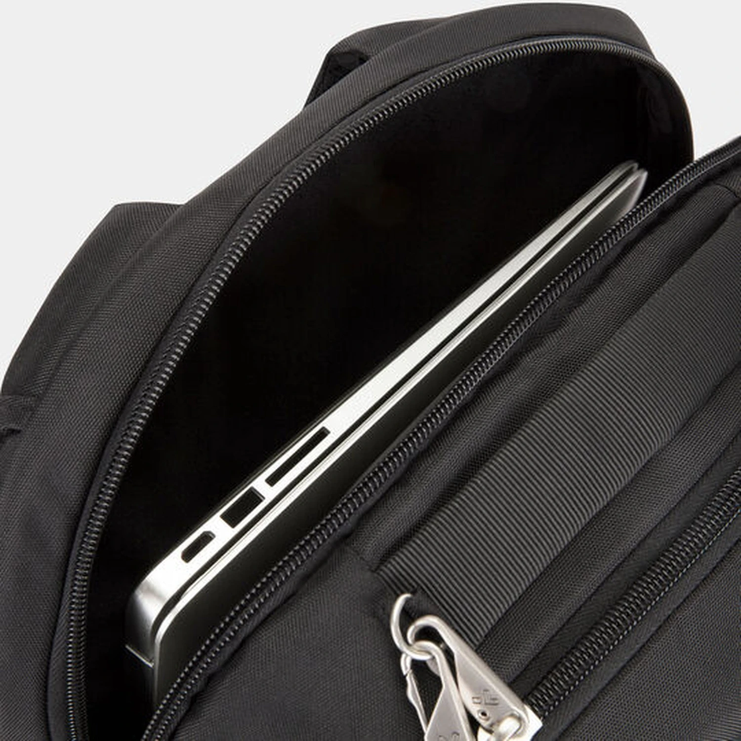 • Tethered key clip with LED light in main compartment